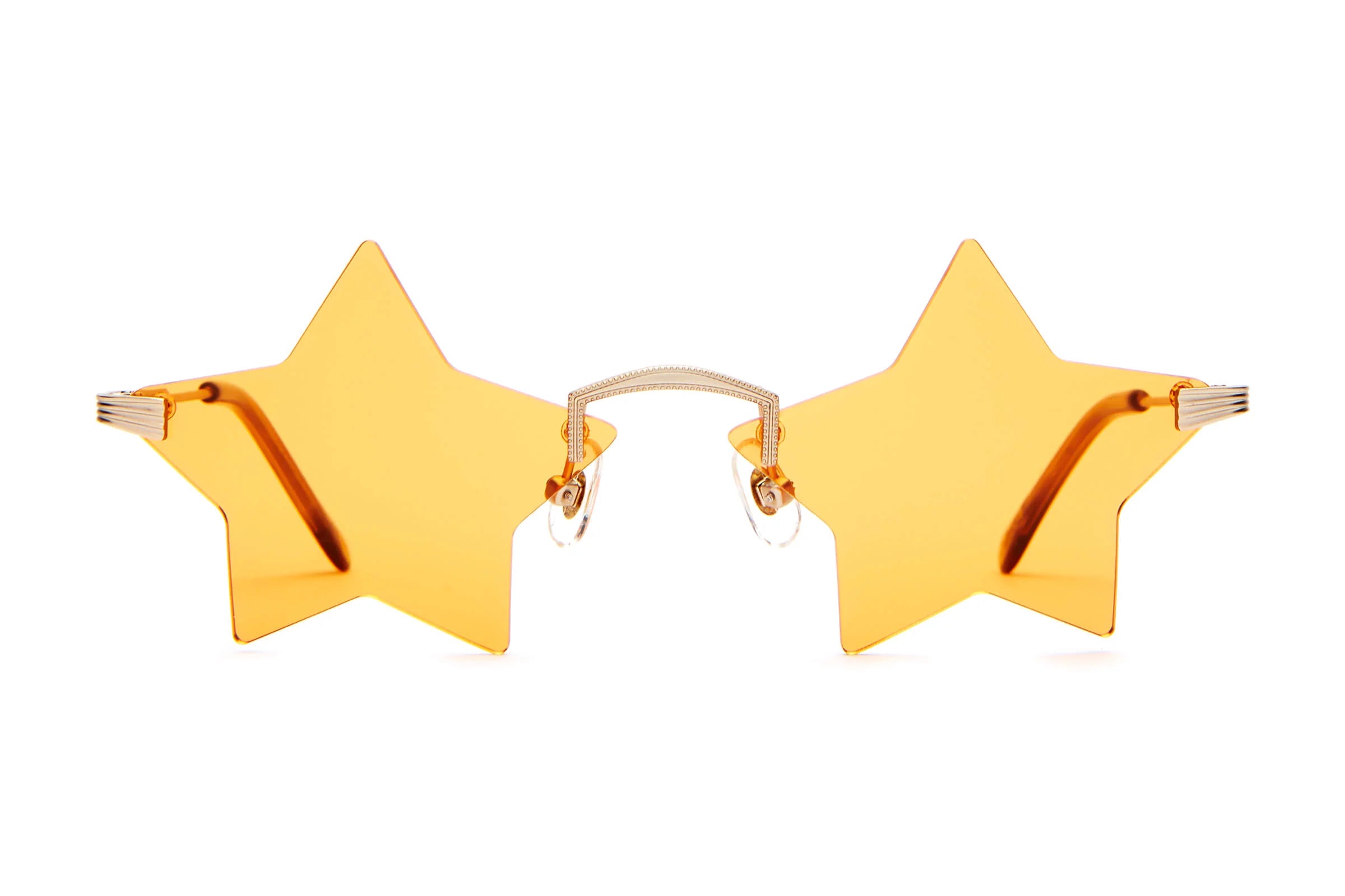 Totally glammed out and ready to blast u into outer space. Star shaped rimless frames in a special colorway designed by Emma Chamberlain, featuring her signature detailing.